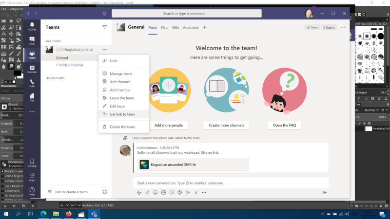 Lisaks sellele saab töörühma omanik kasutada ka töörühma linki, et see saata töörühma liikmetele. Teams rühma lingi saab, kui valida Teams rakenduses