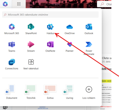 Üldjuhul kõik administreerimine M365-s algab admin lehelt, nimega Haldus (eesti keeles)