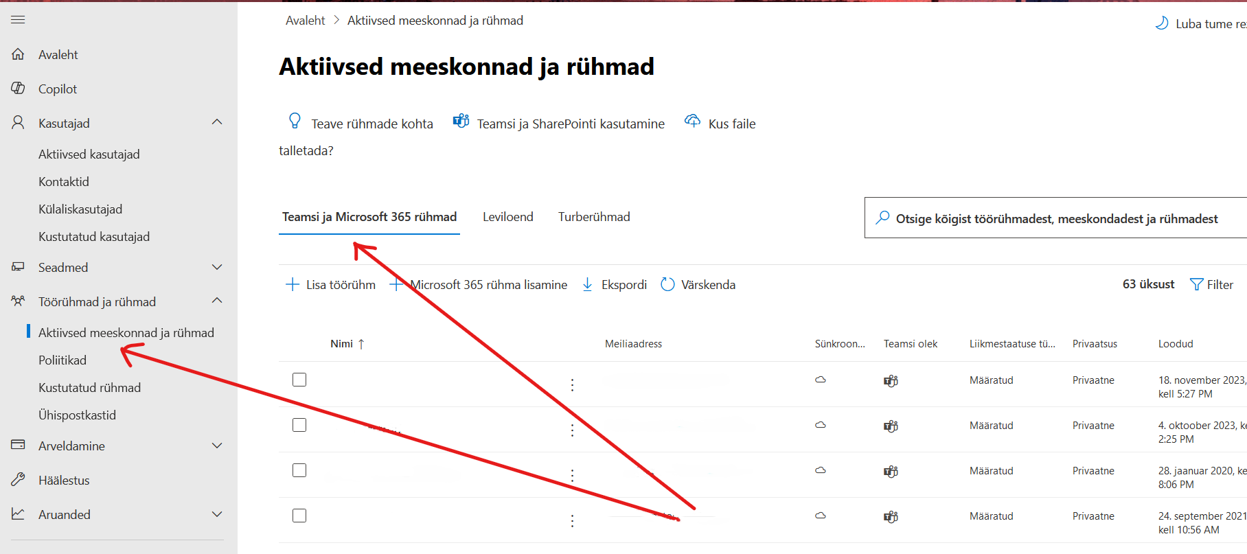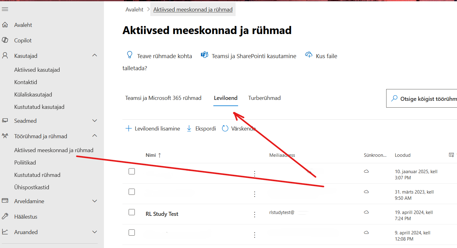 Microsoft Listide administreerimine veebilehel