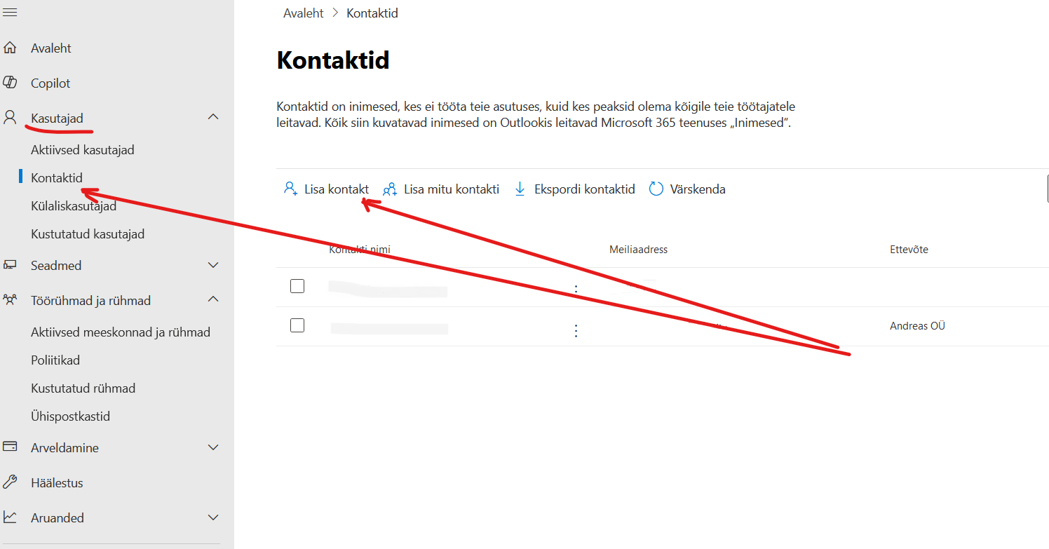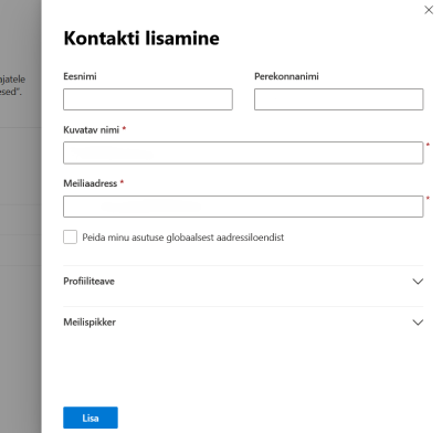Kasutajad → Kontaktid → Lisa kontakt