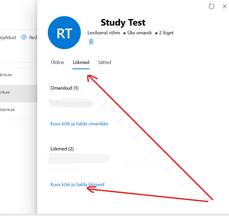Valin soovitava leviloendi vaate. Selle sees avan Liikmed lingi Siin on näha, kes on liikmed ja kes on omanikud (administraatorid).