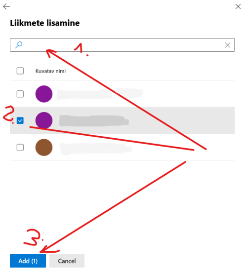 Avaneb liikmete nimekiri, lisamiseks saad valida + Lisa liikmeid