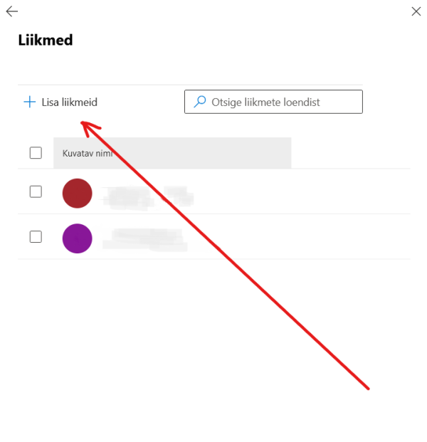 Avaneb liikmete nimekiri, lisamiseks saad valida + Lisa liikmeid